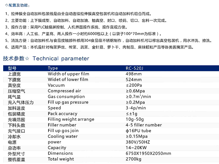 溫州瑞馳包裝設(shè)備有限公司是一家集研發(fā)、制造、銷售全自動(dòng)真空包裝機(jī)于一體的科技型企業(yè),公司全力打造的瑞馳真空包裝機(jī)在同行業(yè)中享有較高的榮譽(yù)和信譽(yù)。公司研發(fā)生產(chǎn)的RC-420、RC-520等系列的全自動(dòng)雙面拉伸膜真空包裝機(jī)、全自動(dòng)連續(xù)拉伸膜真空包裝機(jī)、全自動(dòng)連續(xù)拉伸硬盒真空充氣包裝機(jī)、辣條棒全自動(dòng)生產(chǎn)線等系列。并根據(jù)客戶需求配置自動(dòng)上料系統(tǒng)、輸送系統(tǒng),提升系統(tǒng)等形成成套的包裝流水線等系列產(chǎn)品。借助技術(shù)優(yōu)勢、憑借可靠的質(zhì)量、穩(wěn)定的性能和周到的售后服務(wù),使瑞馳產(chǎn)品遍布**各地,還遠(yuǎn)銷全球多個(gè)國家和地區(qū)。